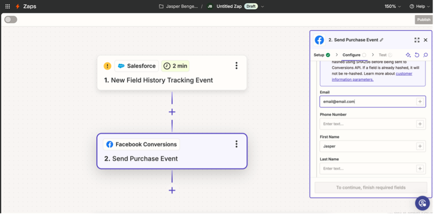 5. Algoritmes voeden met server side tracking. Door de resultaten van een formulier via server side tracking doorsturen kunnen advertising platformen zoals Meta en Google optimaliseren op conversies. Dit kan op verschillende manier, het liefst met een directe koppeling. Of als dat niet mogelijk is met een tool als Zapier. In dit blog heb ik hier eerder meer over geschreven.