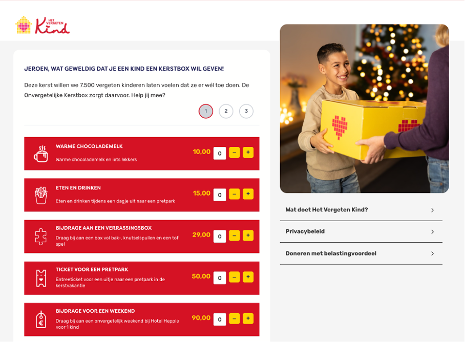 3. Formulieren prefillen, voorbeeld Het Vergeten Kind: Op basis van (privacy vriendelijke) meegegeven URL-parameters in e-mails en DM weet het formulier al wie je bent en hoef je dus geen gegevens meer in te vullen.